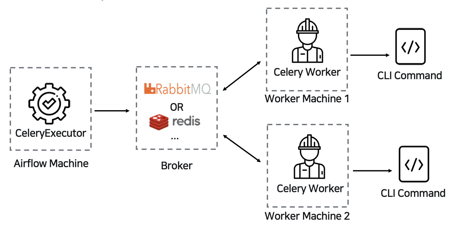 Scheduler는 task instance를 브로커에게 보내고, Celery worker가 이를 수신해 task를 직접 실행한다.
